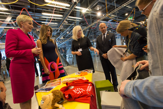 Pierwsze Damy spotkały się z dziećmi – uczestnikami warsztatów programowania. Efekty ich pracy zrobiły na obu paniach duże wrażenie. Towarzyszyły dzieciom w tworzeniu kwiatowej orkiestry, poznały robota Dash, obejrzały niezwykłą robotyczną suknię oraz różnorodne akcesoria, wydrukowane na drukarkach 3D. Pierwsze Damy z zaangażowaniem eksperymentowały również przy naszych eksponatach.