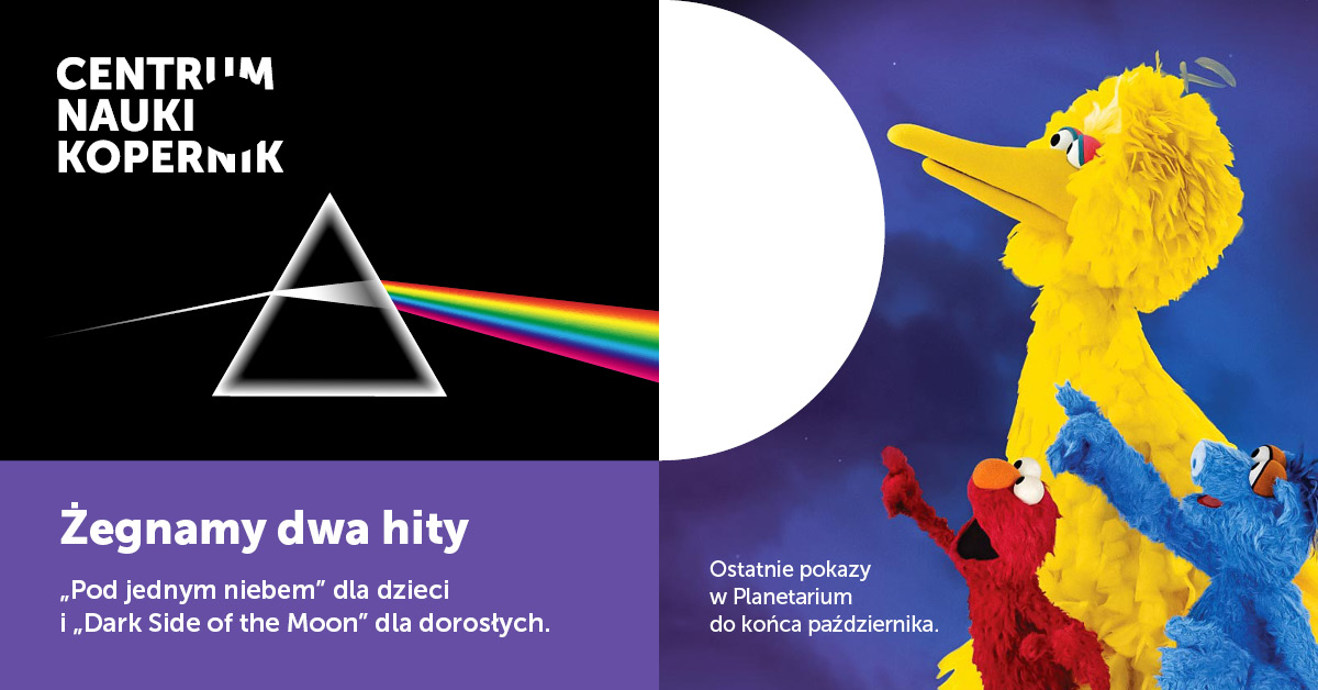 Nieczęsto przydarza nam się sytuacja, abyśmy w jednym czasie żegnali nasze dwa kultowe pokazy, które od lat można było obejrzeć w Planetarium: "Pod jednym niebem – pokaz dla przedszkolaków" oraz "Dark Side of the Moon" – laserowy pokaz dla dorosłych, przygotowany do muzyki zespołu Pink Floyd. Z tego powodu ogłaszamy październik miesiącem pożegnalnym!