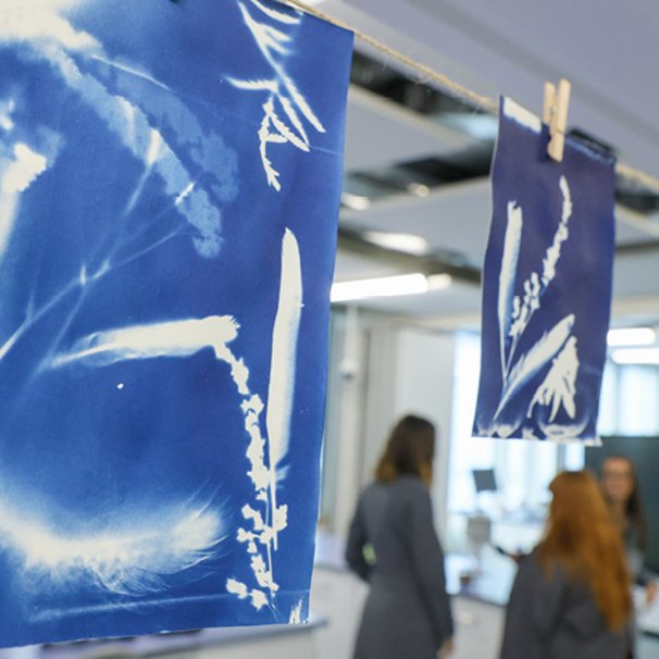 Zapraszamy na stanowisko, gdzie własnoręcznie stworzysz pamiątkową rycinę z natury lub artystyczną kompozycję, wykorzystując technikę cyjanotypii.