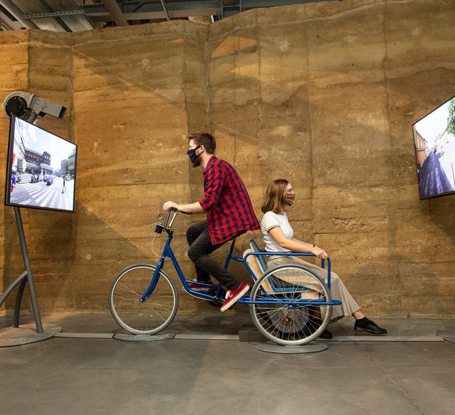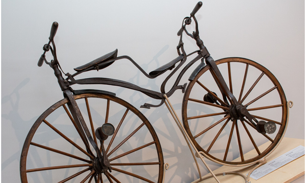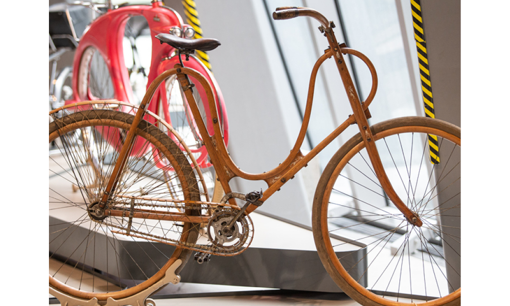 The new temporary exhibition doesn't cease to surprise, while showing you the fascinating path that the bicycle constructors rode through for the last 200 years. Have you ever seen a bike that you brake using your back? Do you think you can get on a penny-farthing which has a 2 m diameter front wheel? Change the gear in an impressively huge bicycle drive and see how riding uphill was dealt with before the invention of gears.