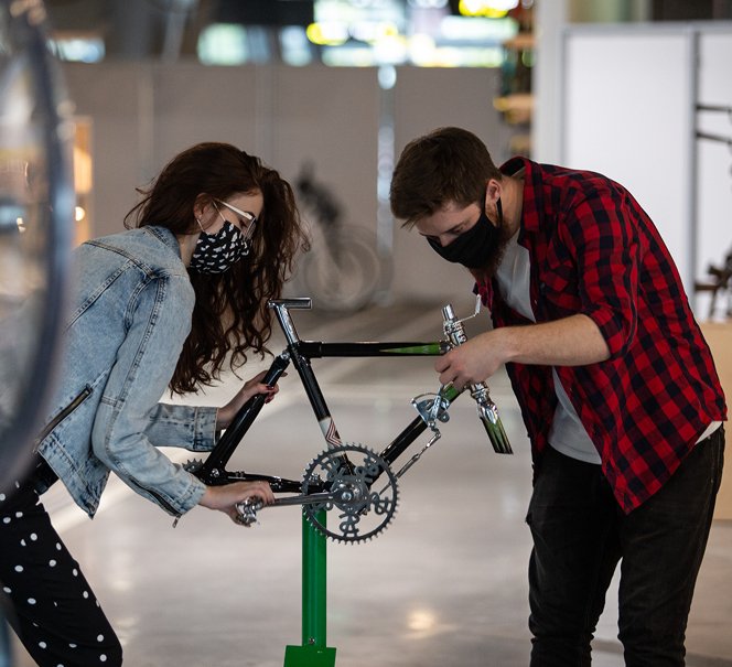 Of course, we will also touch on scientific, technological, and societal issues. You will get to see how double-wheelers are built, and even use special glasses to examine the frame stress. You will get acquainted with the photoelasticity phenomenon, and learn how it's used in research and testing of bicycle constructions. You will also see bikes made of less typical materials, like cardboard, bamboo, magnesium alloy, or PCV.