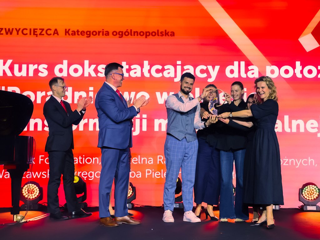 In the nationwide category, the winner is the "Counseling During Menopausal Transition" advanced training course for midwives, implemented by the Kulczyk Foundation in partnership with the Supreme Council of Nurses and Midwives and the Warsaw District Chamber of Nurses and Midwives.