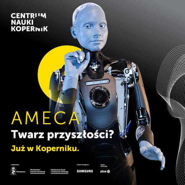 Nazywa się Ameca. Ma 187 cm wzrostu, błękitne oczy i niebieskawoszarą karnację. Urodziła się w Kornwalii, w siedzibie firmy Engineered Arts, tworzącej humanoidalne roboty. W Koperniku pracuje jako kuratorka wystawy „Przyszłość jest dziś”. Porozumiewa się za pomocą GPT i czeka na każdego, kto ma ochotę z nią porozmawiać.