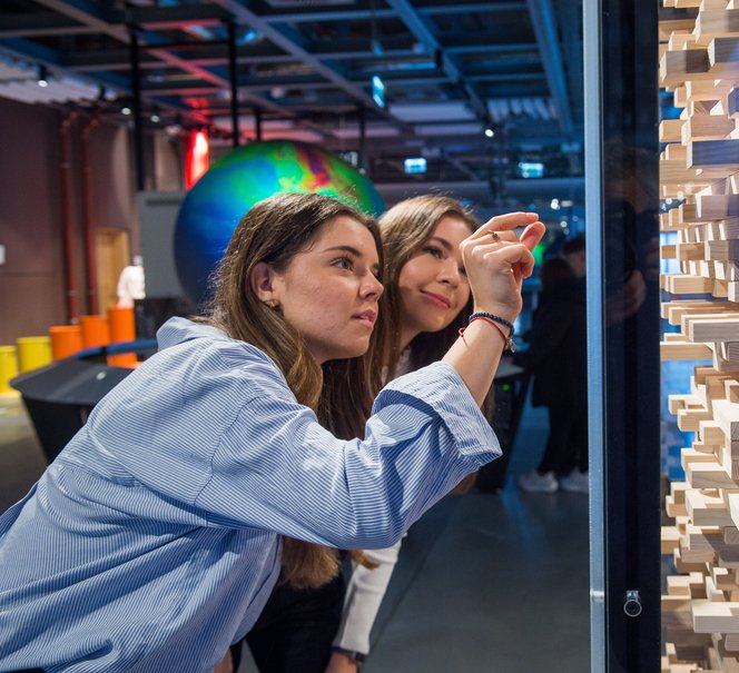 Eksponat spajający wszystkie wątki to Glob, który pozwala spojrzeć na Ziemię z kosmicznej perspektywy. Na powierzchni półtorametrowej sfery można oglądać zmiany stężenia CO2, zmiany średniej temperatury na świecie, zanik bioróżnorodności, procesy migracyjne.