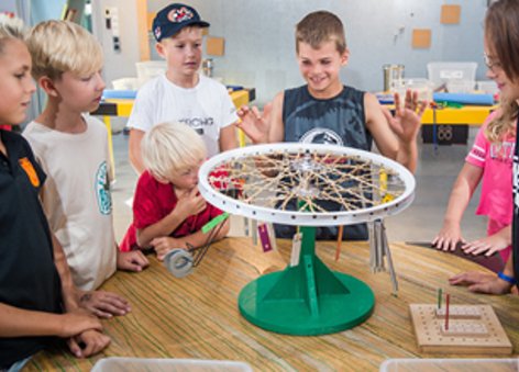 Przestrzeń warsztatowa o wyjątkowych atutach edukacyjnych. Prowadzimy w niej zajęcia dla klas 1-3 szkół podstawowych. Przedmioty codziennego użytku (papier, spinacze, kulki, gumki itp.) służą tu do podejmowania wyzwań inżynieryjnych lub logicznych. Obecnie proponujemy dwa scenariusze zajęć: BudujeMY muzykę oraz BudujeMY mosty (nowość).