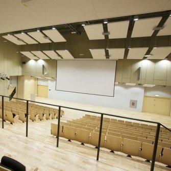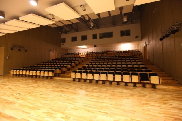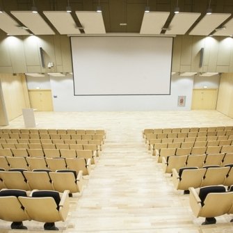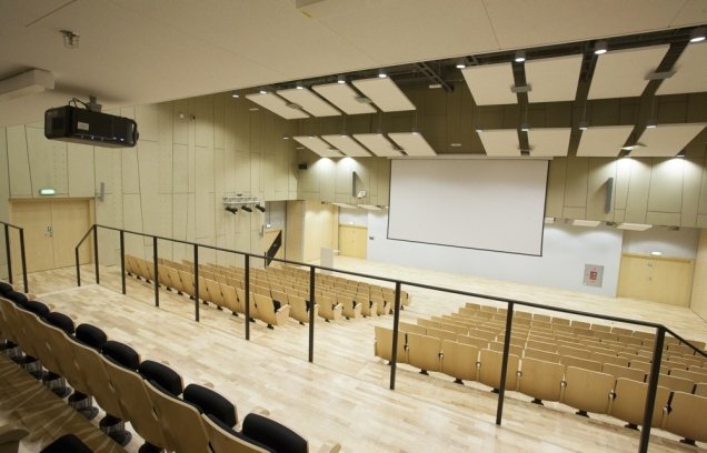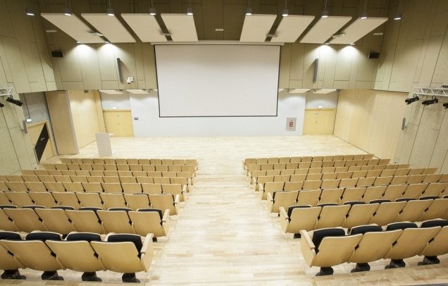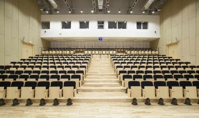Sala audytoryjna wyposażona jest w 280 tapicerowanych krzeseł, ekran, projektor multimedialny, oświetlenie, mównicę z mikrofonem, nagłośnienie wraz z sześcioma mikrofonami bezprzewodowymi oraz trzy kabiny do tłumaczenia symultanicznego wraz z zestawami słuchawkowymi.