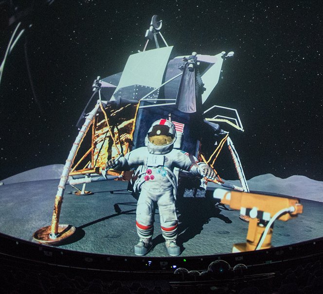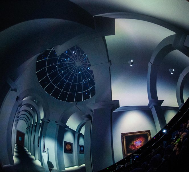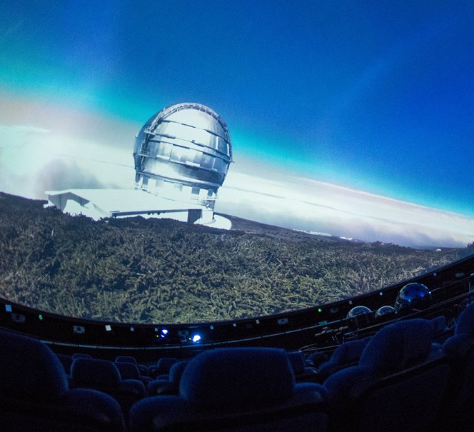 Przed seansem odbywa się pokaz na żywo prowadzony przez prezenterów Planetarium.