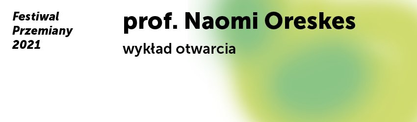 Wykład otwarcia XI Festiwalu Przemiany wygłosi prof. Naomi Oreskes, amerykańska historyczka nauki z Uniwersytetu Harvarda, która zajmuje się m.in. badaniami dot. negacjonizmu klimatycznego i zaufania do nauki. Ostatnio praca prof. Oreskes stała się inspiracją dostępnej do niedawna w Zachęcie wystawy Joanny Rajkowskiej pt. „Rhizopolis”. W zeszłym roku rozważania prof. Oreskes były podstawą wystawy „Wiek półcienia” w Muzeum Sztuki Nowoczesnej.