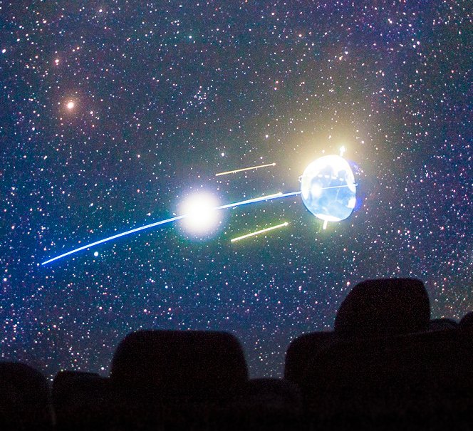 Pokaz prowadzą na żywo prezenterzy Planetarium.