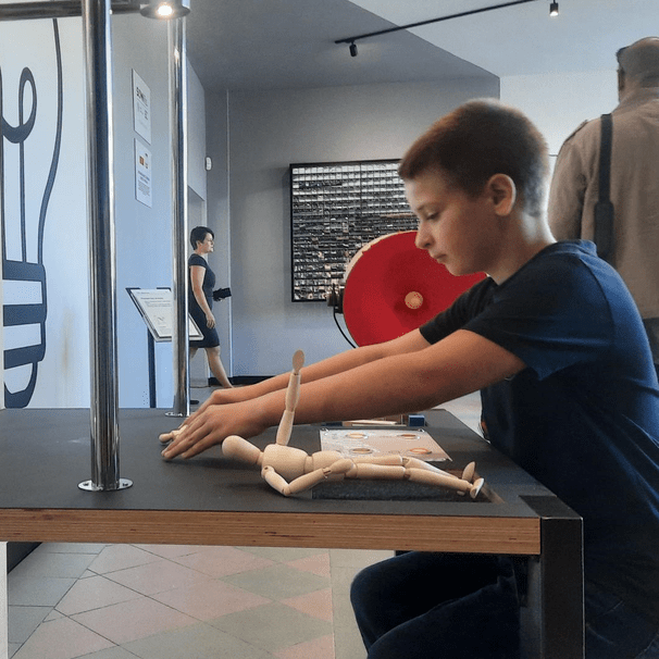 Na zdjęciu widać chłopca eksperymentującego przy eksponacie.