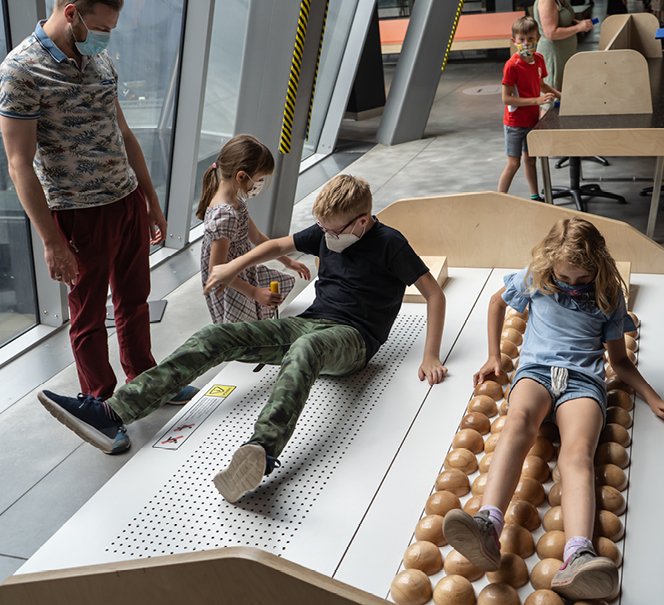 Експонати, які знайдеш тут, не тільки цікаві та повчальні, але також доступні та надзвичайно захоплюючі. Вони надають можливість шукати, тестувати та робити помилки. З максимальною точністю презентують явища природи, які ти можеш відкривати та вивчати під час взаємодії. Більшість з них, чим дуже пишаємося, ми побудували самі у власній майстерні. Деякі з них ми привезли від найкращих конструктів світу. На виставці ми значною мірою обмежили присутність мультимедіа, щоб відвідувач міг повністю зосередитися безпосередньо на дослідах.