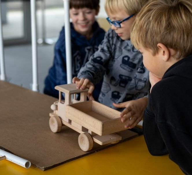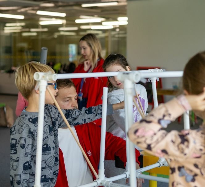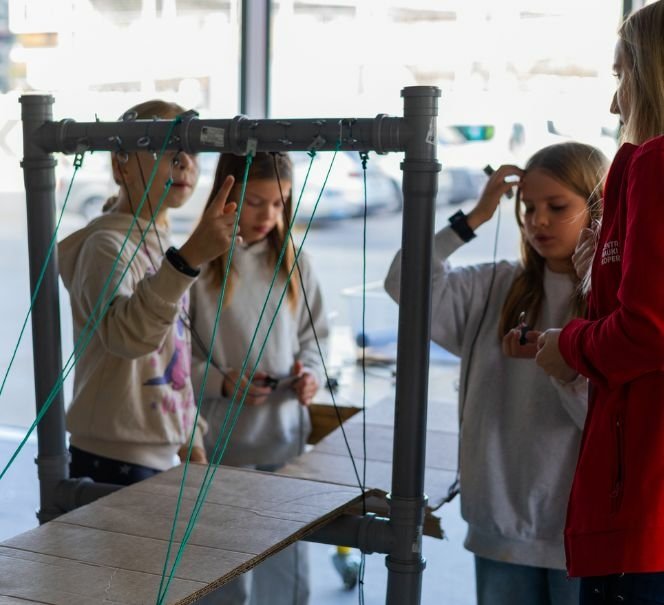 Zajęcia w Majsterni rekomendujemy jako uzupełnienie wizyty na Wystawach. Odbywają się one w zamkniętej przestrzeni. Dzieci pracują pod okiem zespołu animatorskiego, który chętnie odpowiada na pytania i wspiera dzieci w rozwijaniu pomysłów. Warsztaty angażują w proces twórczy także nauczycieli.